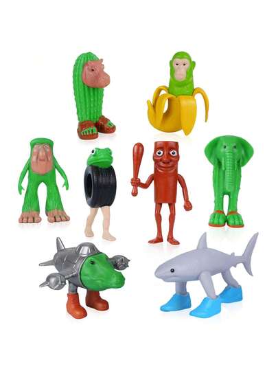 8pcs 1 Set Italian Brainrot Toy Tralalero Tralala Italian Brain Rot Figures Tung Tung Tung Sahur Meme Shark Figures Toys Bombardiro Crocodilo For Cake Toppers Birthday Gifts Party Decorations Decorative, Desktop Ornaments, Halloween Christmas, Birthday Gifts - Multicolor - View 1