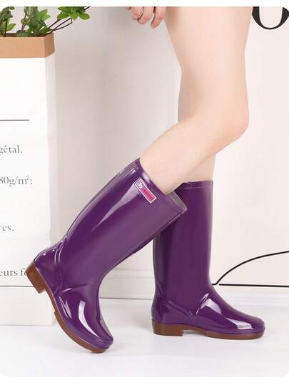 Women's Solid Color Rain Boots, Commuter Rain Shoes For Outdoor Garden, Non-Slip Waterproof Boots, Tall Shaft Wellies - Purple - View 1