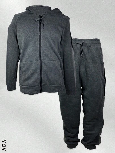 Men Hoodie Co-Ords - Dark Grey - View 1