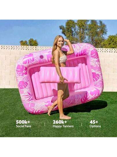 Portable Inflatable Sunbathing Pool - Blue And Pink, Removable Cushion, No Pump Needed, Durable Home Beach And Pool Floating Swimming Relaxation Room, Suitable For Summer Water Party, Inflatable Pool - Multicolor - View 1