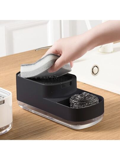 1pc Kitchen Soap Dispenser And Sponge Holder Set, Press Style Liquid Soap Box Bathroom Decor Summer - Black - View 1