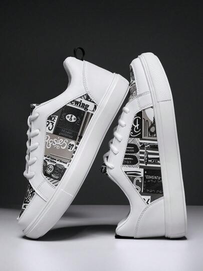 Men's Athletic Shoes - Black and White - View 1