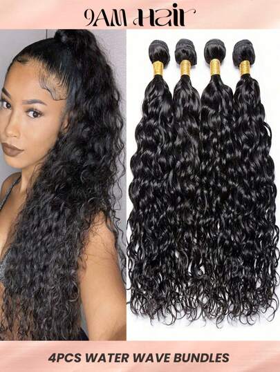 4pcs 8-30inch Water Wave Natural Black Virgin Human Hair Bundles Hair Extensions Weave Bundles High Quality For Women - Natural Black - View 4