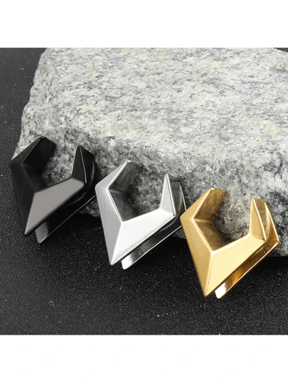2pcs Stainless Steel Geometry Saddle Ear Tunnel Plugs Expander Stretchers Gauges Earrings Piercing Body Jewelry - Triangles - View 1