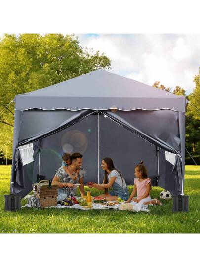 Gazebo 3 X 3 M Waterproof Stable Winterproof Folding Gazebo Foldable Garden Tent, Pop Up Party Tent, Folding Gazebo Tent With 4 Side Walls, UV Protection 50+ Metal Braces For Camping (Grey) - Grey - View 1