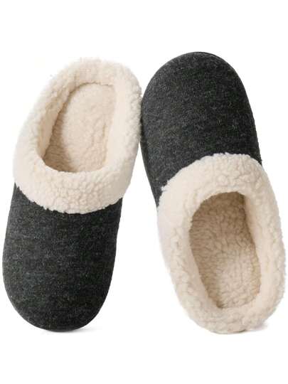 Wishcotton Women's Fur Fleece Slippers With Cozy Memory Foam, Ladies Warm Comfy Indoor Outdoor House Shoess - Black - View 1