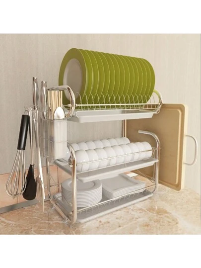 LIVINGANDHOME Living And Home 3 Layers Dish Drainer Rack,Compact Stainless Steel Dish Drying Rack With Drain Tray,Cutting Board Holder And Cutlery Holder,Kitchen Organizer Storage Shelf For Countertop - White - View 1