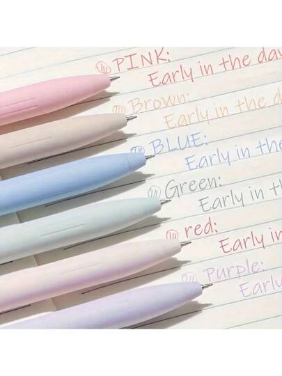 SHEIN X Jess 6pcs/Set Colorful Gel Ink Pens, Quick Dry Ink Pens, 0.5mm Fine Point Black Ballpoint Pens, Smooth Writing Pens For Office And School, Back To School Supplies - Multicolor - View 8