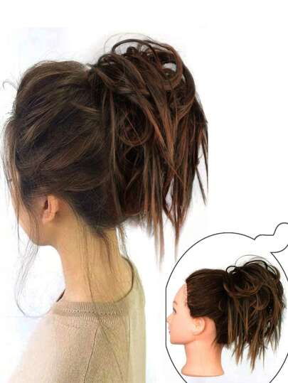 Messy Bun Hair Clip Clamp Synthetic Hair Extension For Short & Straight Hair Women, Ideal For Daily Use With Ponytail And Extended Hair Length, 10inch - Light Brown - View 1
