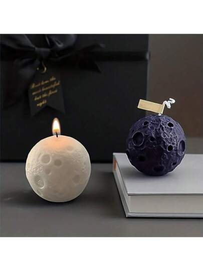 2pcs 3D Moon & Earth Candle Molds, Planet Craft Art Silicone Soap Molds, Moon Aromatherapy Wax Craft Resin Molds DIY Handmade Gypsum Molds, Clay Making Supplies Home Decor - White - View 1