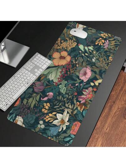 Boho Flowers Large Gaming Mouse Pads Black Office Desk Mat With Non-Slip Rubber Base, Stitched Edge Mousepad For Work, Game, Home Christmas Thanksgiving Gift - Color - View 1