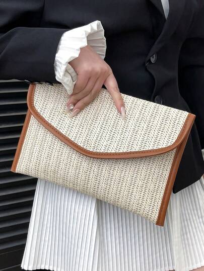 1pc Fashionable Envelope Clutch Bag, New Summer Straw Woven Handbag Suitable For Women Daily Use, Perfectly Matching With Vacation Outfits Women, Vacation Essentials, Perfect For Summer, Vacation & Beach - Beige - View 1