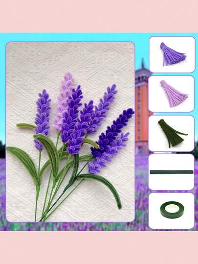 161PCS Lavender Pipe Cleaner Flower Kits, DIY Art And Crafts Chenille Stems Lavender Flower Creation, Including 50pcs Taro Purple Pipe Cleaners, 50pcs Green Chenille Stems, 50pcs Light Purple Chenille Stems, 10pcs 30cm Flower Stems, 1pc Floral Tapes, As Graduation Or Start Of School Gifts, Pipe Fuzzy Cleaners Set, Handmade DIY Twisted Stick Flowers, Artificial Lavender Bouquets For Party Wedding Home Decor, Craft And Art Diy Artistic Creative Handicraft Project, Suitable For Beginners, - Multicolor - View 1