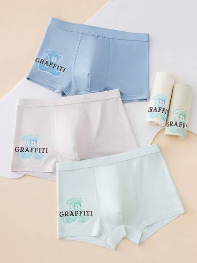 Tween Boy 5pcs/Pack Graffiti & Letter Printed Comfortable Breathable Boxers - Multicolor - View 1