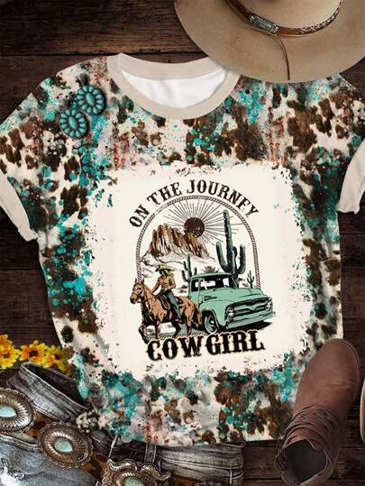 SHEIN LUNE Women's Western Cowgirl T-Shirt, Suitable For Summer - Multicolor - View 1