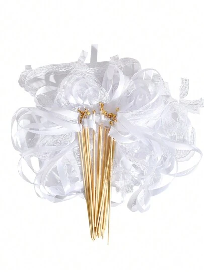 10/20pcs Ribbon Wands With Triple Lace Ribbon And Gold Bell Party Wand Party Favors Streamers Ribbon Sticks Magic Fairy Wands For Wedding Decors Best Gifts, Wedding Decor, Home Decor, Room Decor Bride Birthday Graduation Birthday Decorations Party Decorations Bachelorette - White - View 1