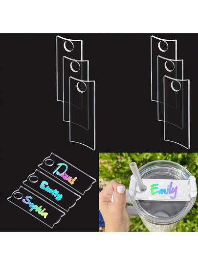 6 Pcs Clear Name Plate/Tag For  Cup Lid 30oz Tumbler With Handle, Cup Transparent Nameplate,  Cup Accessories, Sports Cup Accessories, Cup Accessories, Transparent Nameplate - Clear - View 1