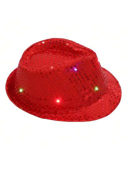 Generic Jazz Hat Glowing Sequins LED Portable Shining Hat For Performance - Red - View 1
