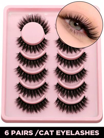 GROINNEYA 6 Pairs False Eyelashes Manga Lashes Cat Eye Lashes Faux Mink Eyelashes Fox Eye Eyelashes Natural Full Lashes Cosplay Travel Essentials Makeup Tools(8-11) - Black - View 6