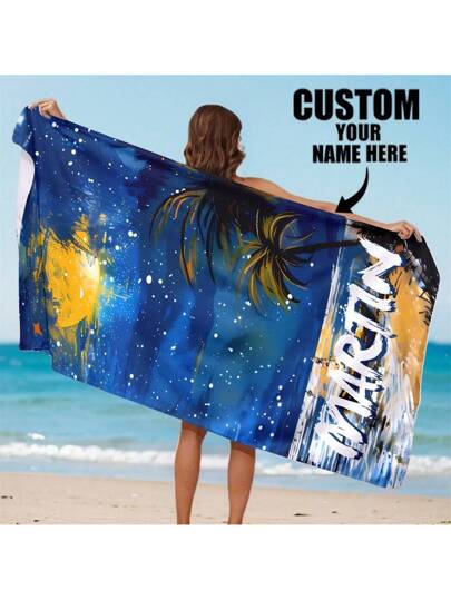 1 Piece Customized Name Beach Towel, Personalized Bath Towel, Wedding Couple Commemorative Gift, Valentine's Day/Birthday Gift, Friend/Couple/Family Name, Adult Swimming Pool Towel, Holiday Gift, Beach Towel, Car Accessory, Easter, Fun Graphic, Summer Travel, Summer Essential, Beach, Surfing, Pool, Bathing Necessity Bathroom Decor Beach Essentials - Multicolor - View 1