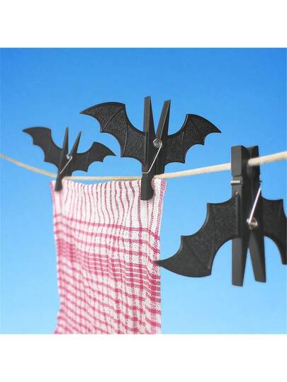 2pcs Creative Plastic Bat Shape Windproof Clothespins Cartoon Clothes Hanger Clips, Anti-Skid - Black 2pcs - View 6