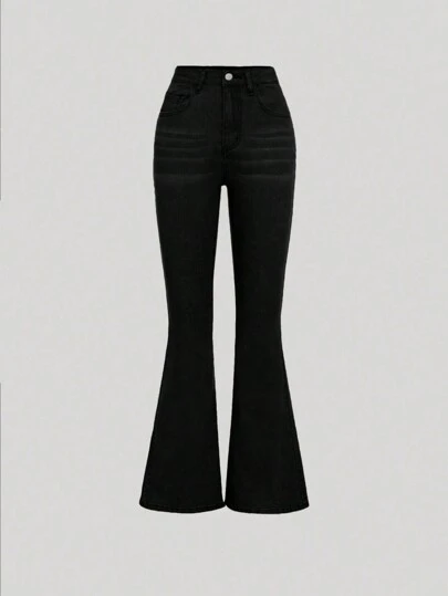 Teen Girl Solid Color  Flared Leg Casual Jeans - Black - View 1