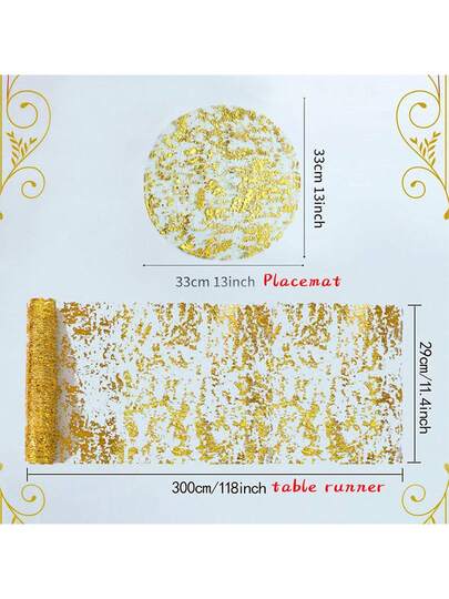 1/3/18pcs Luxury Round Placemats & Square Table Runners, Wedding Party Celebration Decor, Metal Mesh Gold Foil Placemats, Usable Gold & Silver Round Placemats, Gold Foil Metal Mesh Small Mats, For Christmas Valentine Party Decorations, Gold & Silver - Multicolor - View 19