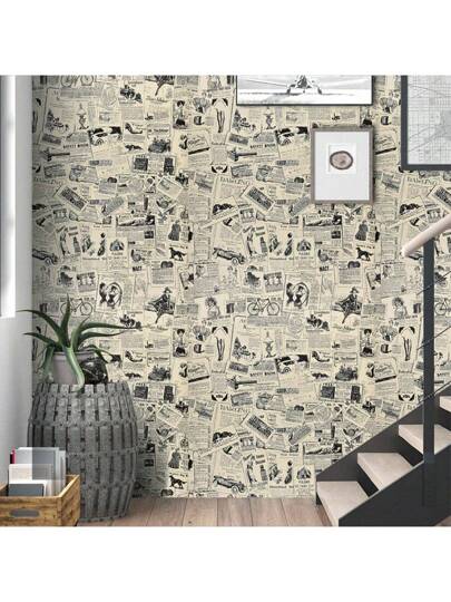 1 Roll Of Old Newspaper Home Decor Wallpaper Bedroom Living Room Background Wall Paper Vintage Coffee House Nostalgic Self-Adhesive Wall Stickers Wardrobe Furniture Renovation, Renovation Stickers Peel Wall Panels, Wall Paper, Wallpapers, Spring Decoration Items Refresh Your Home, Rama Decoration Stickers - Multicolor - View 1