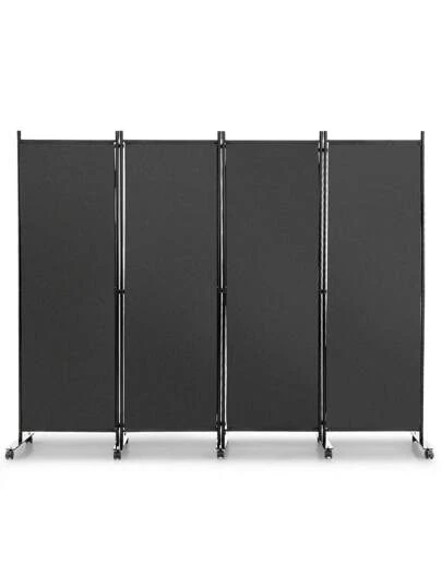 4 Panel Room Divider On Wheels Rolling Privacy Screens Portable Freestanding Grey - Grey - View 1
