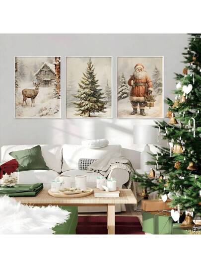 Christmas Prints Gallery Wall Set Of 3 Christmas Paintings Printable Home Decor Of Santa Claus Christmas Painting ,Wall Canvas Decoration, Ideal Gifts For Hallway Bedrooms And Living Room Christmas Decorations Room Decor - Multicolor - View 1