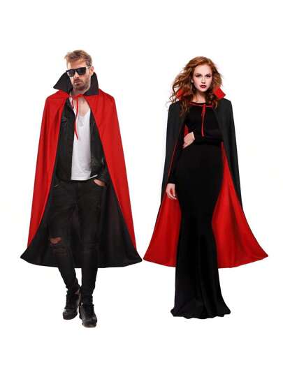 Adult Halloween Cloak Cape Hooded Medieval Costume Witch Witchcraft Vampire Halloween Costume Full Length Dress Coat, Christmas - Multicolor - View 1