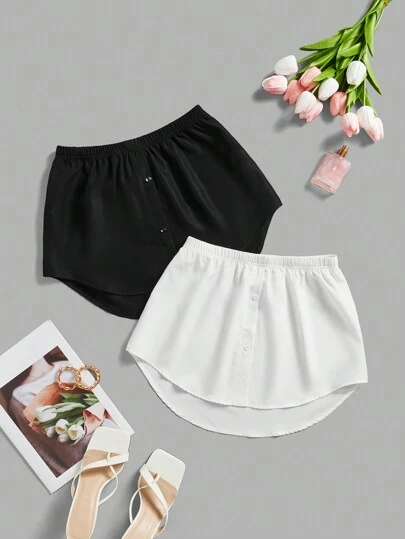 SHEIN Essnce 2 Pcs/Set Plus Size Women Casual Shirt Extender Fake Layered Wearing Tool Versatile All-Match Skirt, Shirt False Hem Skirt, Summer - Black and White - View 1