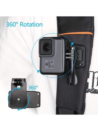 Backpack Clip Holder For Gopro Hero 13 12 11 10 9 8 Black 7 6 5 4 3 Accessories 360-Degree Rotation Clip For YI 4K SJ4000 DBPOWER AKASO EKEN H9R - Black - View 1