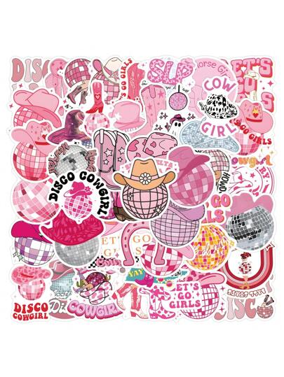 55pcs Disco Cowgirl Stickers, Party Favors Stickers Suitable For Water Bottles, Skateboards, Laptops, Ideal For Western Space Cowgirl Birthday Party, Bachelorette Party, Rodeo Party, Cowgirl Christmas, Also Applicable To Laptops, Rodeo Party, Cowgirl Christmas Events. Sticker Themes Include Disco Cowgirl, Bachelorette Party, Cowgirl Bachelorette Party, Etc. - Multicolor - View 1