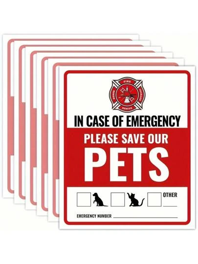 Waterproof UV-Resistant Pet Emergency Rescue Sticker, High Visibility, Easy To Apply, Suitable For Fire And Emergency Situations To Protect Our Cats And Dogs. Firefighters Will Use Warning Stickers To Rescue Our Loved Ones From Windows, Doors Or Houses. Essential Pet Supplies, Pet Safety Warning Sticker, Waterproof Fire Rescue Warning Sticker, Valentine's Day Pet Supplies, Ramadan - Multicolor - View 1