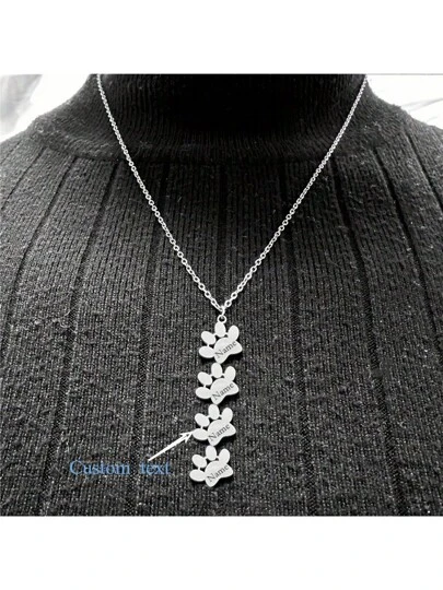 Customizable Engraved Pet Paw Print Necklace - Elegant Stainless Steel Name Tag Jewelry, Perfect Gift For Dog & Cat Lovers,Silver,Stylish,Colorful,Vintage,Simple,Unisex,Casual,Cuties,Custom,Personalized,Unique,Ideal Gifts For Him,Ideal Gifts For Her,Her,Boyfriend,Girlfriend,Dad,Mom,Family,Friends,For Anniversaries,For Birthdays,For Graduation,For Prom,For Party,Promseason - Silver - View 4