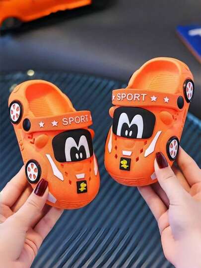 Kids Cartoon Car Slippers, Soft Bottom Indoor/Outdoor Toddler Sandals - Orange - View 1