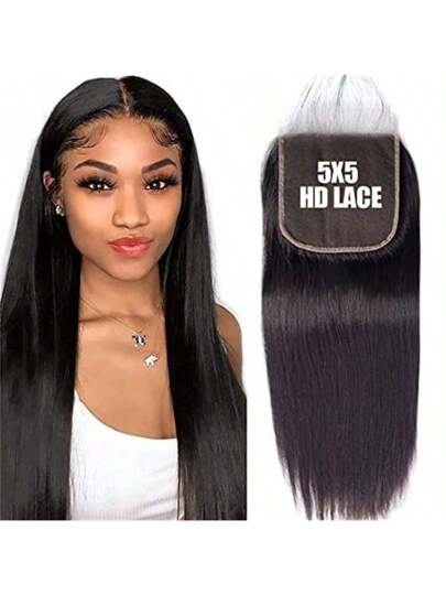 5X5 Lace Closure Human Hair Straight Free Part 5X5 HD Lace Closure Straight Closure - SNatural - View 1