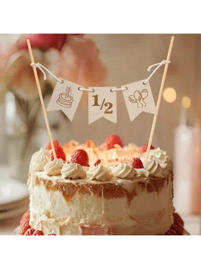 1PC Cake Decorations, Wooden Half A Year Birthday First Birthday Cake Decoration Wooden Banner Carving Birthday Party Dessert Decoration Supplies Gifts - Half-year-old Wooden Plug-in - View 8