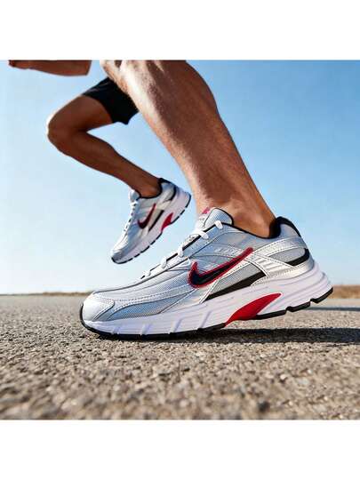 Nike Initiator Men's Running Shoes, Breathable Mesh Upper, Comfortable, Lightweight Casual Sneakers, Shock Absorbing & Bounce Back, 394055-001 - Metallic Silver/Black/White/Campus Red - View 1