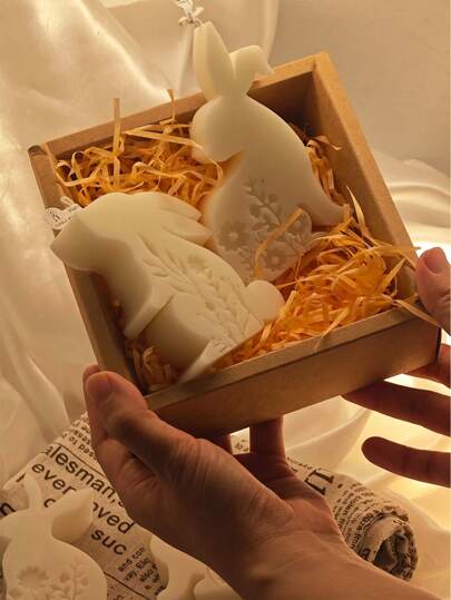 1pc Easter Bunny Silhouette Mould, Handmade Candle Decor Ornament Animal Mould, For Making Scented Candles, Gypsum, Home Decor Crafts, DIY Decorations - White - View 1