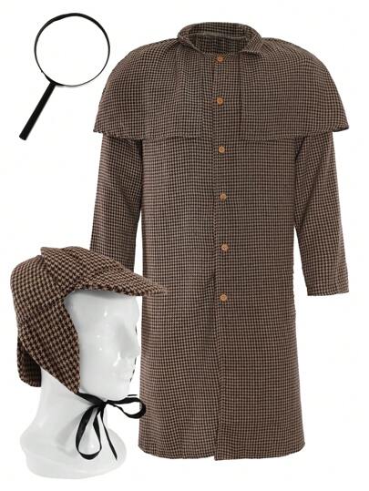 Mens Sherlock Holmes Costume World Book Day Character Victorian Detective Fancy Dress Outfit Deerstalker Hat With Coat And Magnifying Glass Adults Teacher Costume For World Book Week - Cape, Hat & Magnifying Glass - View 1