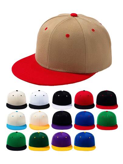 1pc Unisex Two-Tone Flat Bill Plain Trucker Baseball Cap, Hip-Hop Sun Hat - Multicolor - View 24
