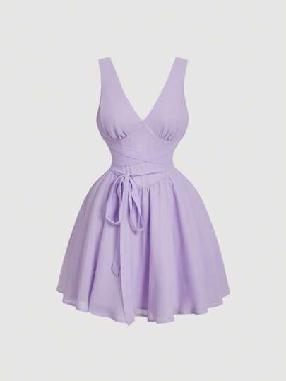 SHEIN MOD Women Purple Romantic V-Neck Bow Dress, Holiday Dress,Western Wear Women,Country Outfits,Beach Vacation Wear,Boho  Women,Birthday Outfits For Women,Spring And Summer Dress,Brunch Outfits - Mauve Purple - View 1