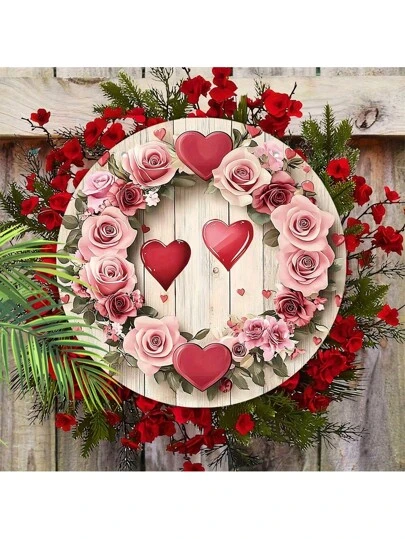 Valentine's Day Red Roses With Pink Flowers Wooden Garland - Suitable For Porch, Garden And Home Decor - Multicolor - View 1