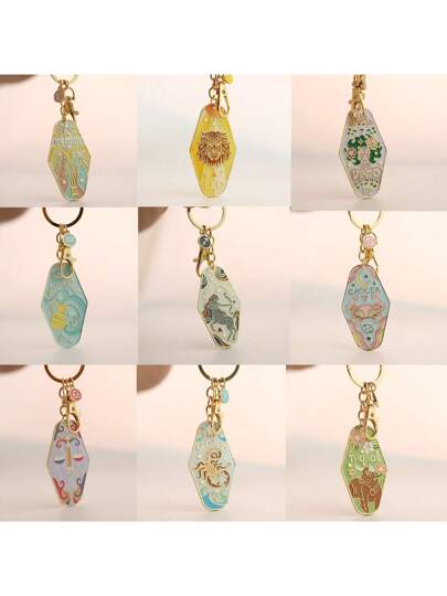 1pc Bohemian Aries/Taurus Zodiac Sign Keychain, Metal Enamel Hotel Key Ring, Perfect Gift For Families, Friends, Colleagues, Partners, Birthdays Car Accessories Bag Charm School Cute Goth Y2k - Constellation - View 28