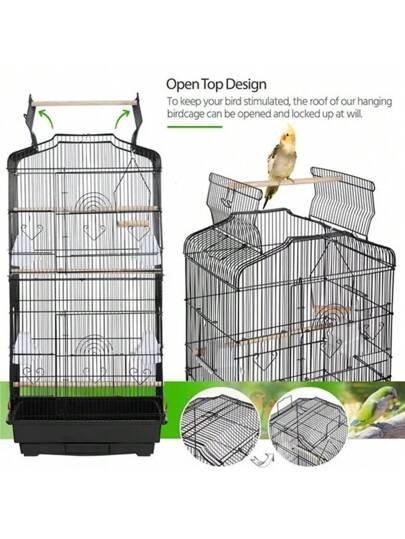 Budgie Cage Metal Parrot Bird Cage Open Top Bird Aviary For Cockatiels Canaries - Black - View 9