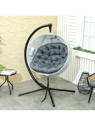 Outsunny Hanging Egg Chair Outdoor Indoor Garden Swing Chair With Folding Basket, Garden Hanging Chair With Stand, Thickened Cushion, Cup Holder For Patio, Balcony - Grey - View 8