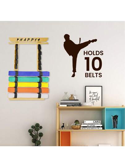 10Belts Karate Belt Display Rack With Medal Hanger And Stickers, Taekwondo Belt Display Holder, Martial Arts Belt Display Organizer For Kids And Adults, No Assembly Required Perfect For Christmas Decorations - Bamboo - View 5