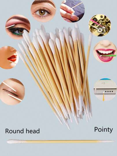 500/300/100/50pcs Pointed-Tip & Round-Tip Double-Ended Multipurpose Bamboo Cleaning Swabs, Individually Packaged Makeup Cleaning Sticks For Beauty Details & Makeup Removal - Multicolor - View 9